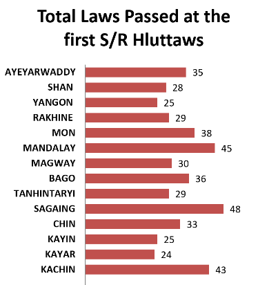 ပထမအကြိမ် တိုင်းဒေသကြီး သို့မဟုတ် ပြည်နယ်လွှတ်တော်အသီးသီးမှ ပြဋ္ဌာန်းပြီးစီးသော ဥပဒေ အရေအတွက်ကို လေ့လာဆန်းစစ်ခြင်း